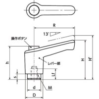 ミニプラクランプレバー 操作ボタンつき(めねじ・スティール) LECF-C