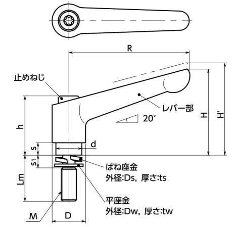 型式 タイプ 材質 M(並目) Lm R H H' h s D d Ds ts Dw tw s1 歯数 最大荷重