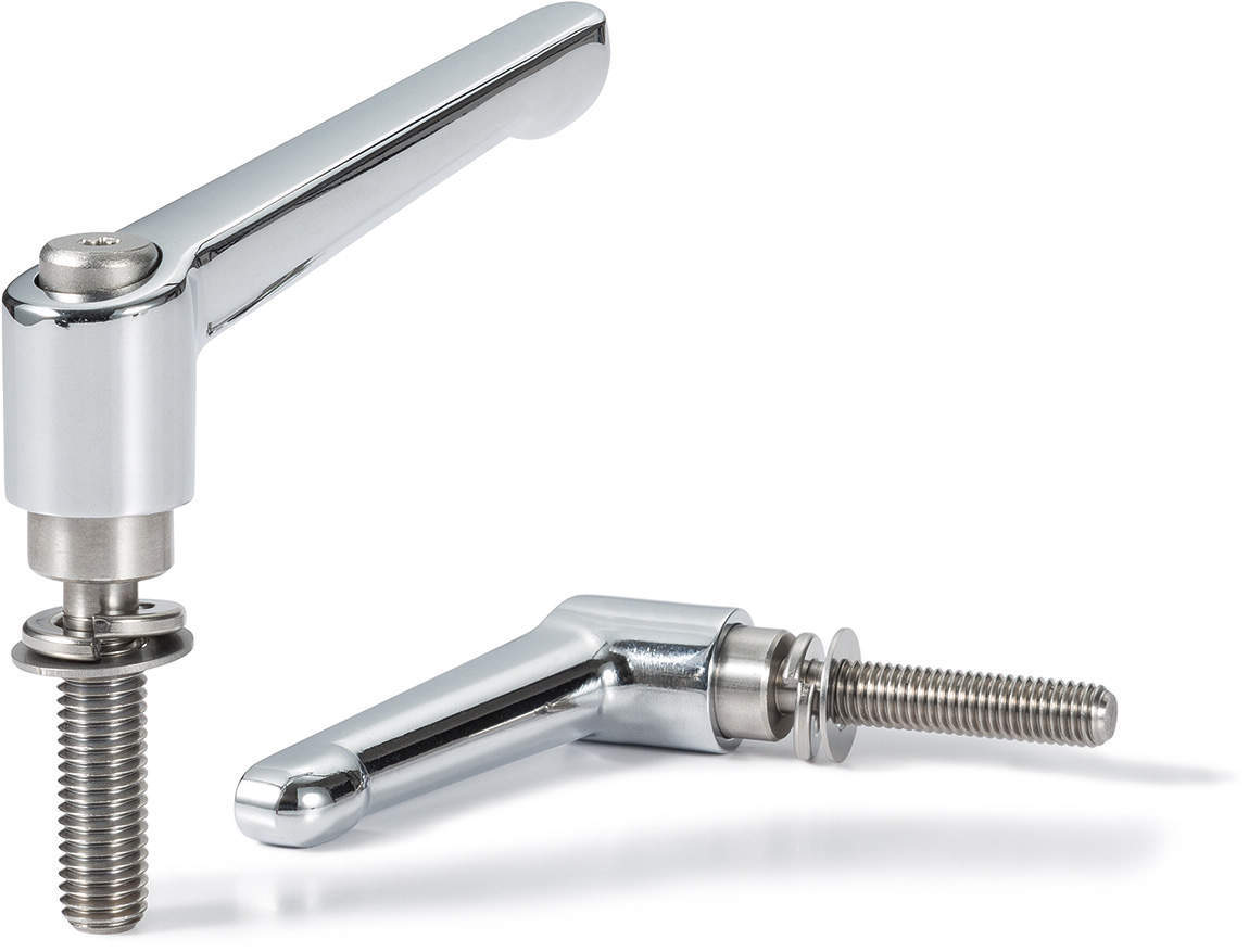 ばね座金が組み込まれた、ねじ部がステンレス製のクランプレバー。