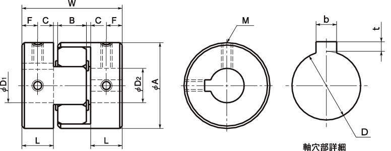 A L W B C F G M D1 D2 呼び 寸法 b t 呼び 寸法 b t