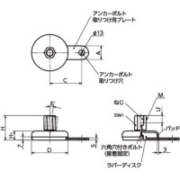 ・ラバーディスクと一体になったアンカーボルト取りつけ用プレートが付属しています。床面への固定に利用できます。