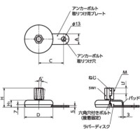 ・ラバーディスクと一体になったアンカーボルト取りつけ用プレートが付属しています。床面への固定に利用できます。