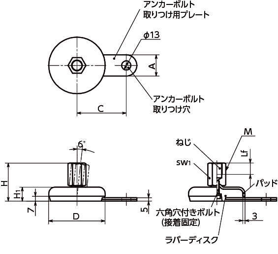 | アンカーボルト | スティール、三価クロメート処理 |