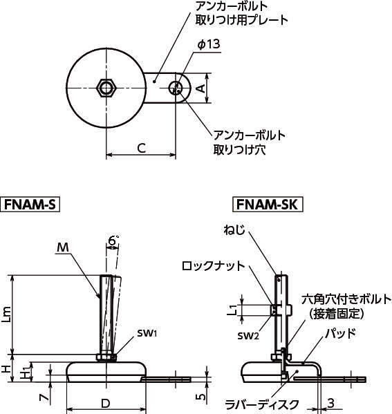 | ロックナット | ・FNAM-S:- ・FNAM-SK:スティール、三価クロメート処理 |