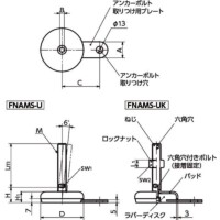 レベリングアジャスタ(おねじ) アンカー固定タイプ 六角穴つき FNAMS-U