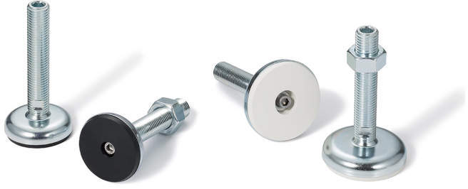 機器、装置の滑り止めに効果的なラバーディスクのついた、耐久性に優れた金属製レベリングアジャスタ