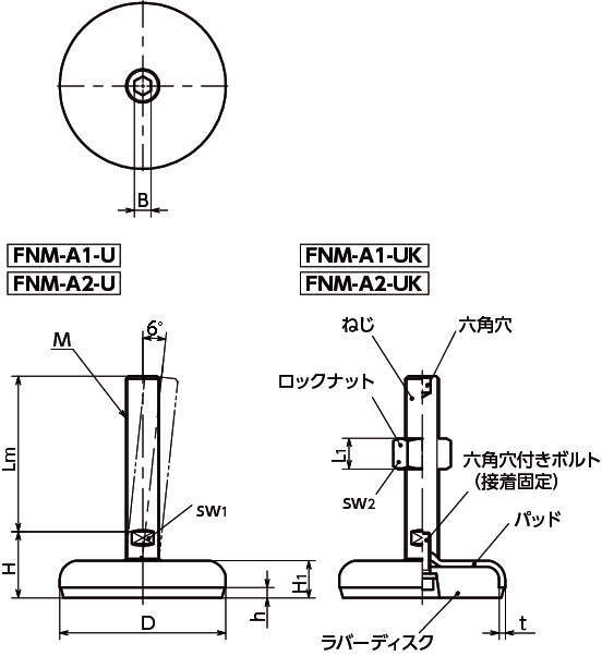 | ロックナット | ・FNM-A1-U :- ・FNM-A1-UK:スティール 三価クロメート処理 ・FNM-A2-U:- ・FNM-A2-UK:スティール 三価クロメート処理 |