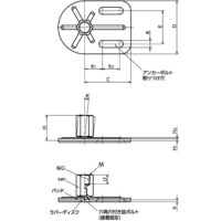 ・アンカーボルト用の取りつけ穴は2か所です。床面への設置後、パッドの回転ずれ防止に効果的です。