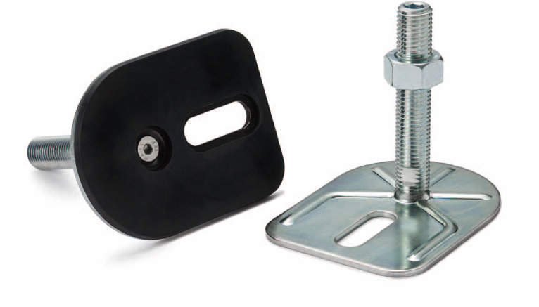 耐久性にすぐれた金属製のレベリングアジャスタ。