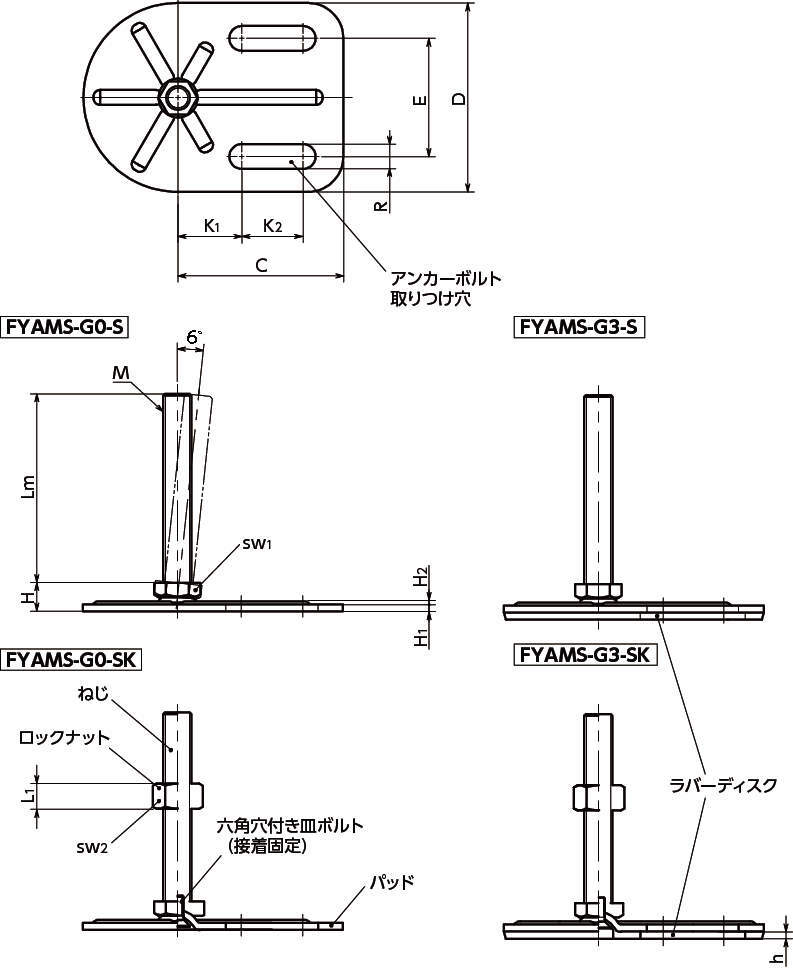 | ロックナット | ・FYAMS-G0-S:− ・FYAMS-G0-SK:SUS304 ・FYAMS-G3-S:− ・FYAMS-G3-SK:SUS304 |
