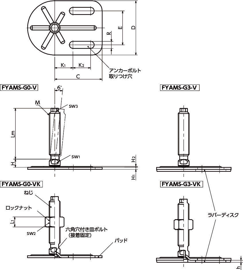 | ロックナット | ・FYAMS-G0-V:− ・FYAMS-G0-VK:SUS304 ・FYAMS-G3-V:− ・FYAMS-G3-VK:SUS304 |