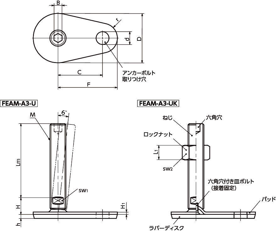 | ロックナット | FEAM-A3-U:− FEAM-A3-UK:スティール三価クロメート処理 |