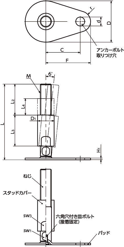 ・機器・装置の高さ調整は、ねじの二面幅を利用してください。