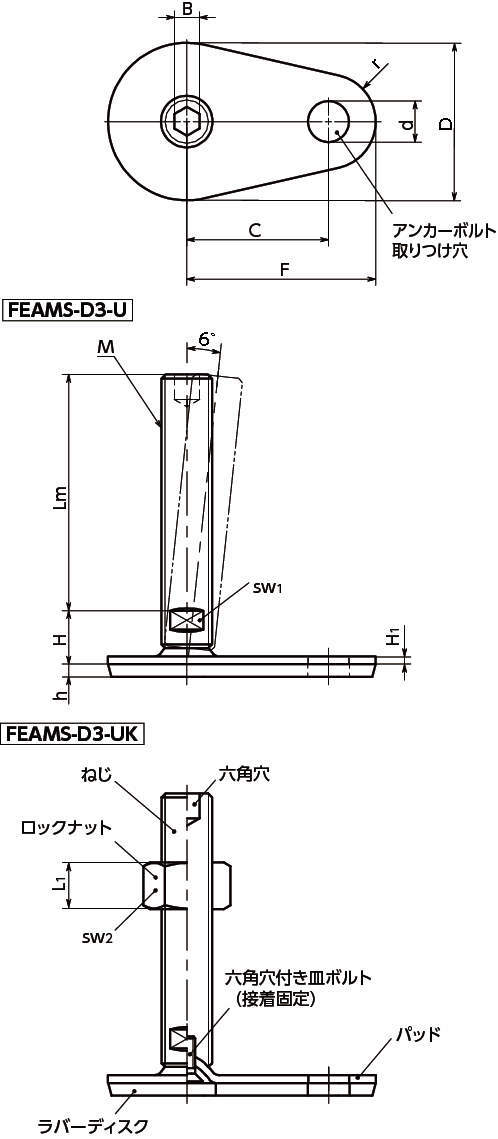 | ロックナット | FEAMS-D3-U:− FEAMS-D3-UK:SUS304相当 |