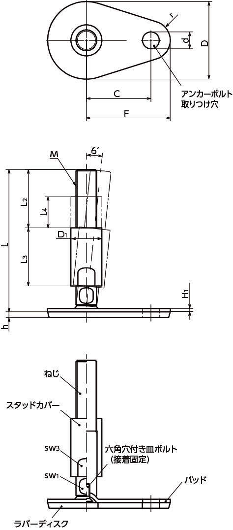 ・機器・装置の高さ調整は、ねじの二面幅を利用してください。