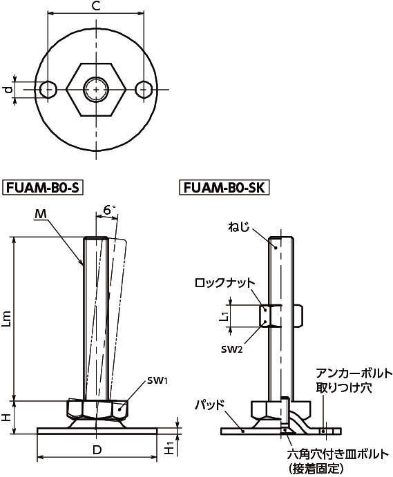 | ロックナット | FUAM-B0-S:− FUAM-B0-SK:スティール三価クロメート処理 |