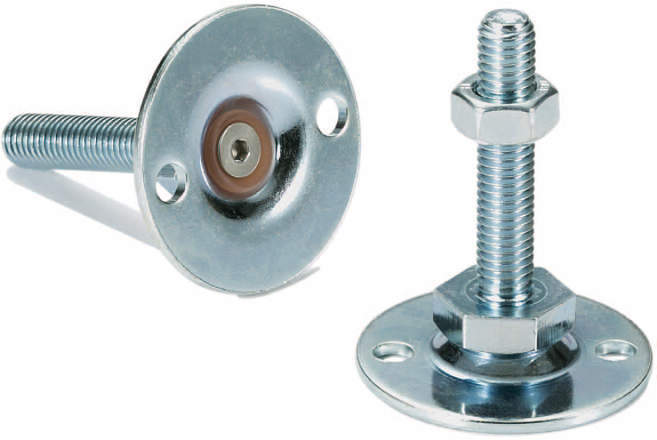 耐久性にすぐれた金属製のレベリングアジャスタ。