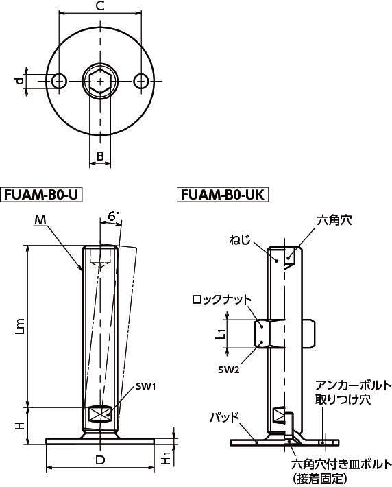 | ロックナット | FUAM-B0-U:− FUAM-B0-UK:スティール三価クロメート処理 |