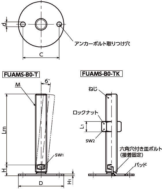 | ロックナット | FUAM-B0-T:− FUAM-B0-TK:SUS304相当 |