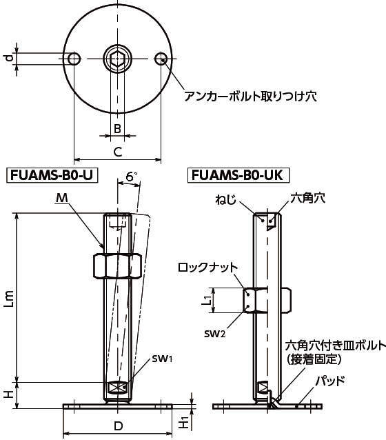 | ロックナット | FUAM-B0-U:− FUAM-B0-UK:SUS304相当 |