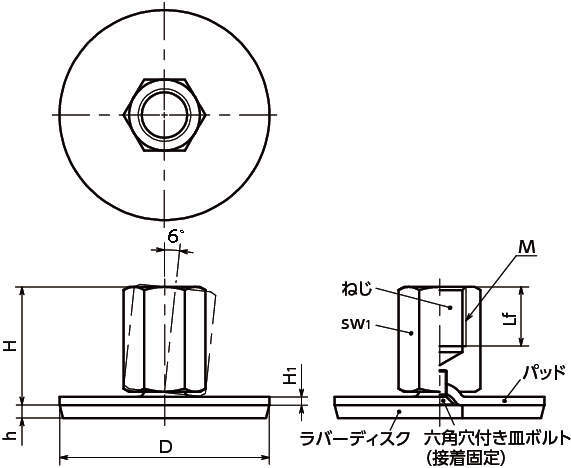 ・ラバーディスクはパッドに接着されています。機器・装置への取りつけ・取りはずしや移動時に、ラバーディスクの脱落を防止します。