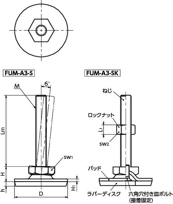 | ロックナット | FUM-A3-S:− FUM-A3-SK:スティール三価クロメート処理 |