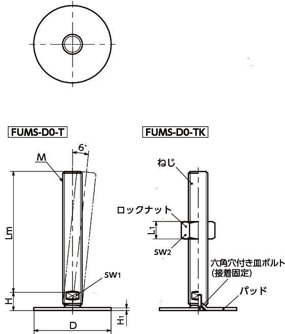 レベリングアジャスタ(おねじ) 二面幅調整 FUMS-D0-T