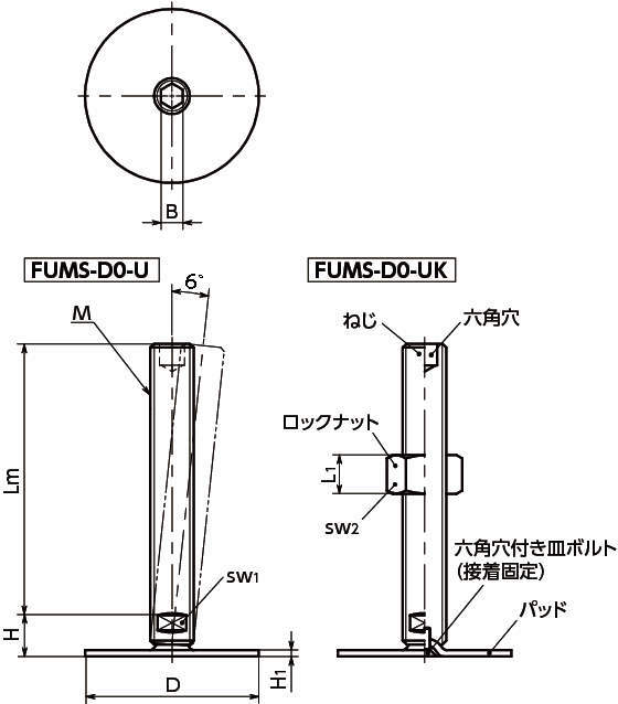 レベリングアジャスタ(おねじ) 六角穴つき FUMS-D0-U
