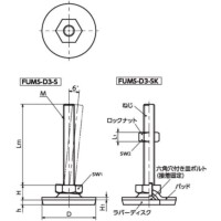 レベリングアジャスタ(おねじ) 六角調整 ラバーディスクつき(接着) FUMS-D3-S