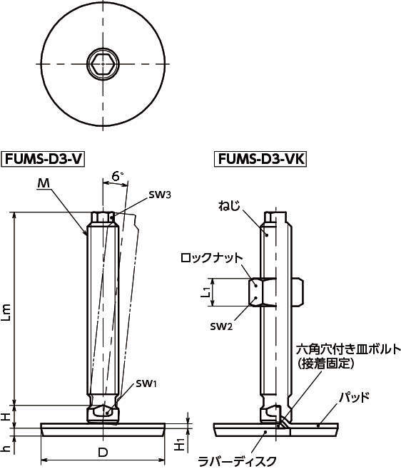 | ロックナット | FUMS-D3-V:− FUMS-D3-VK:SUS304相当 |