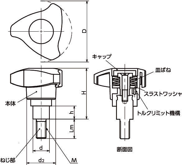 ・設定トルクはノブの外径に対して3種類を標準化。品番の末尾に設定トルクの値を指定してください。