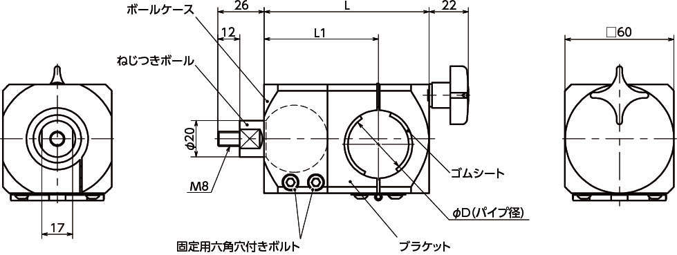 ※締めつけトルクは、ねじつきボールのねじ部の締めつけトルクです。 ※保持トルクは、固定用六角穴付きボルトを記載の締めつけトルクで締めつけたときの値です。
