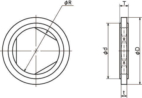 | 型式 | R | D | d | T | t | 適用ねじサイズ |