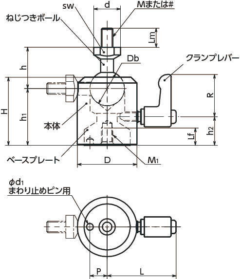 型式 D M(並目) # ねじの呼び Lm h M1(並目) Lf