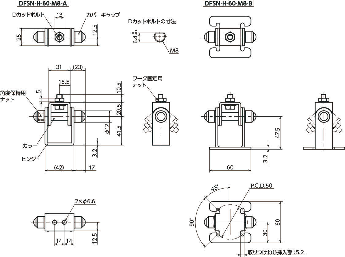 ディスプレイ固定部品|画N固 アングルヒンジ 六角ナット保持 DFSN-H