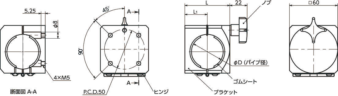| ブラケット | A6063 アルマイト処理 |
