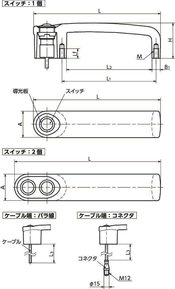 型式 カラー A L B1 H L1 L2 Lf M スイッチ L3