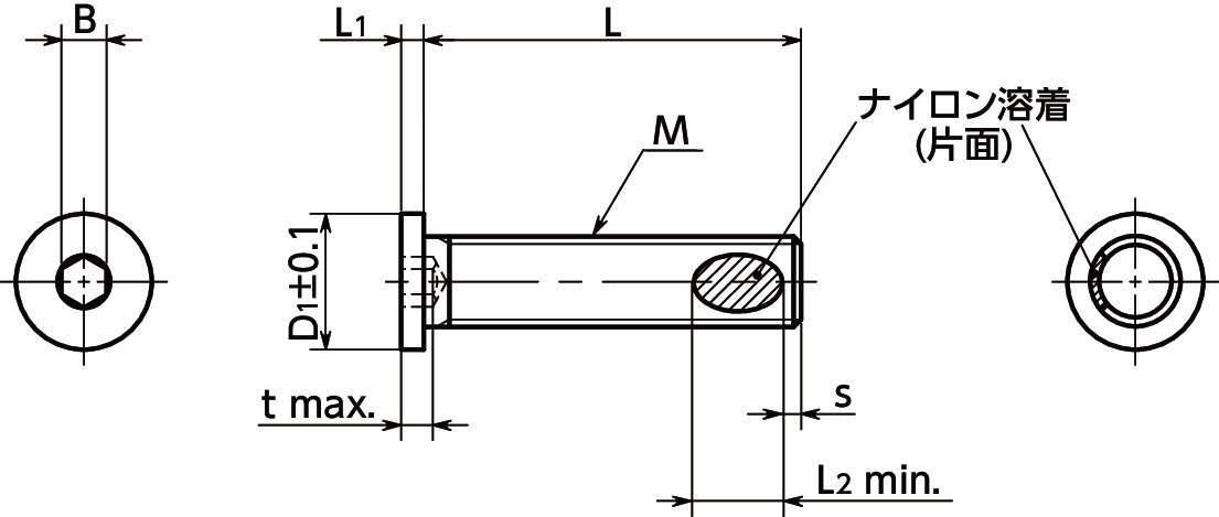 ・ナイロン溶着つきの極低頭小頭ボルト。