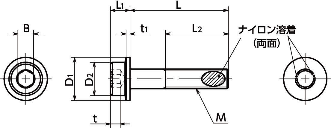 ・ねじ部に溶着したナイロンの摩擦によってねじの戻り回転を抑制します。