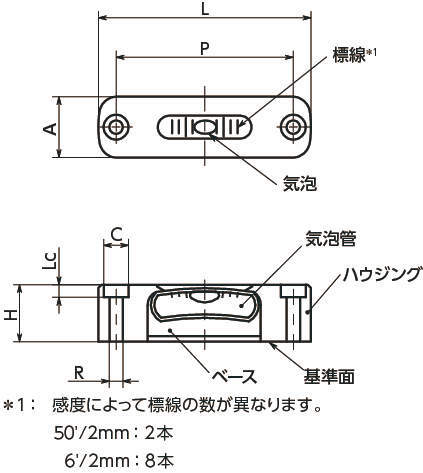 ・一軸タイプの気泡管水平器。