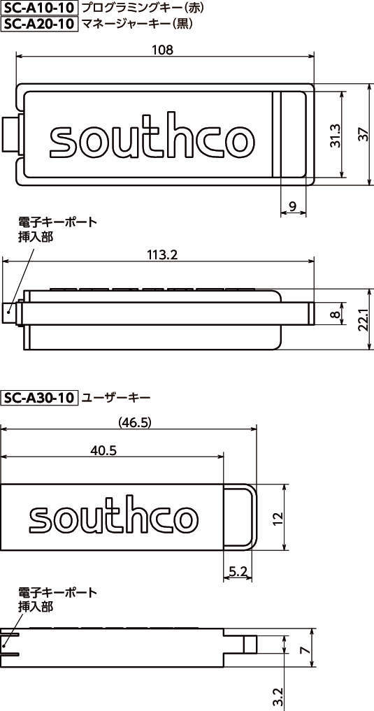 ・電子ラッチ(SC-10)に対して1本を登録でき、初期設定およびマネージャーキー(SC-A20-10)の登録のために使用します。