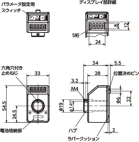 ・パラメータ設定により、リード値・回転方向・読み取り方向が設定可能。また、ミリ・インチの表示が切り替えできます。