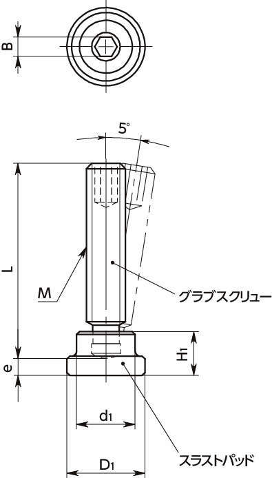 ・スラストパッドはグラブスクリューに対して5°まで傾きます。