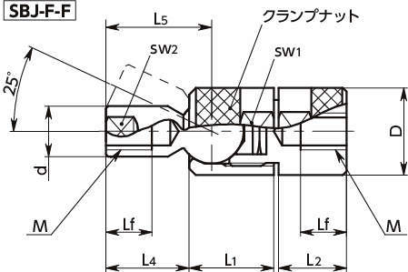 型式 タイプ ボール側 固定側 M(並目) Lm Lf D d L1 L2 L3 L4 L5 SW1 SW2 質量