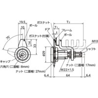 ・六角穴をまわすと、ポールが後退してロックがはずれます。さらにまわすと、ポールは75°回転し、ドアをあけることができます。