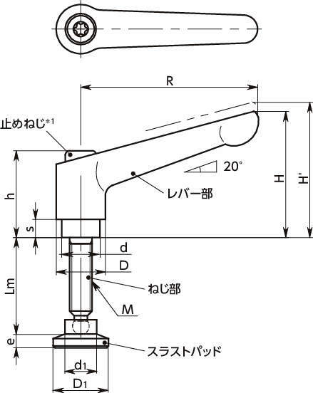 クランプレバー スラストパッドつき(おねじ) LDM-SGB-SBP