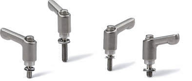 ■ばね座金が組み込まれた、オールステンレス製のミニクランプレバー。