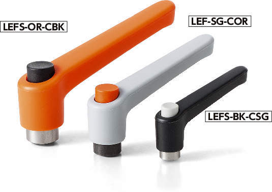 ■操作ボタンつきのプラクランプレバー。めねじタイプ。