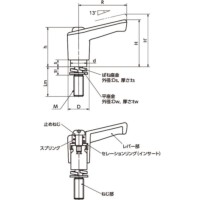 ■亜鉛ダイカスト製のセレーションリングをプラスティック製レバー本体にインサート。金属製のねじのセレーションとのかみ合いにも充分な強度を実現しています。