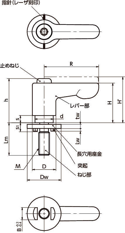 型式 タイプ 材質 レバー色 M(並目) R H H' h s D d Dw tw Lw s1 B Lm 歯数 最大荷重